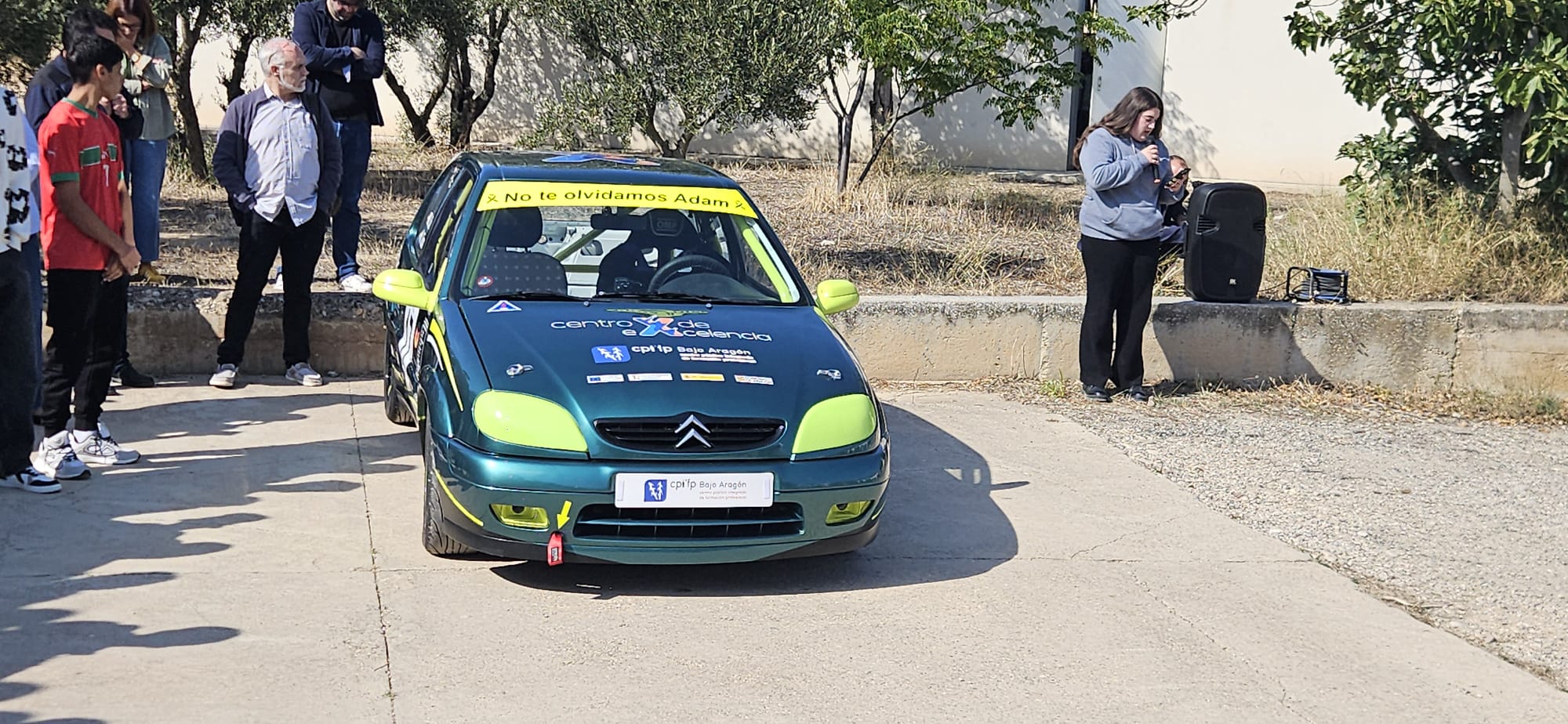 Como recuerdo, se colocó un parasol con una frase en su nombre sobre el Citroën Saxo de competición, vehículo que fue preparado a través de un proyecto de centro y en e l que Adam junto con sus compañeros de grupo tuvieron un papel protagonista.
