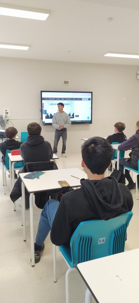 Abderrahim también inició su camino en un ciclo básico de Mantenimiento de Vehículos y, a lo largo de su intervención, ha compartido su trayectoria académica y laboral hasta la actualidad. Sobre todo, ha transmitido al alumnado la importancia de desarrollar ciertas cualidades que, según su propia experiencia, resultan esenciales en la vida: la formación continua, la capacidad de esforzarse por los propios objetivos, el compromiso con dar siempre lo mejor de uno mismo y, por supuesto, mantener una actitud positiva.