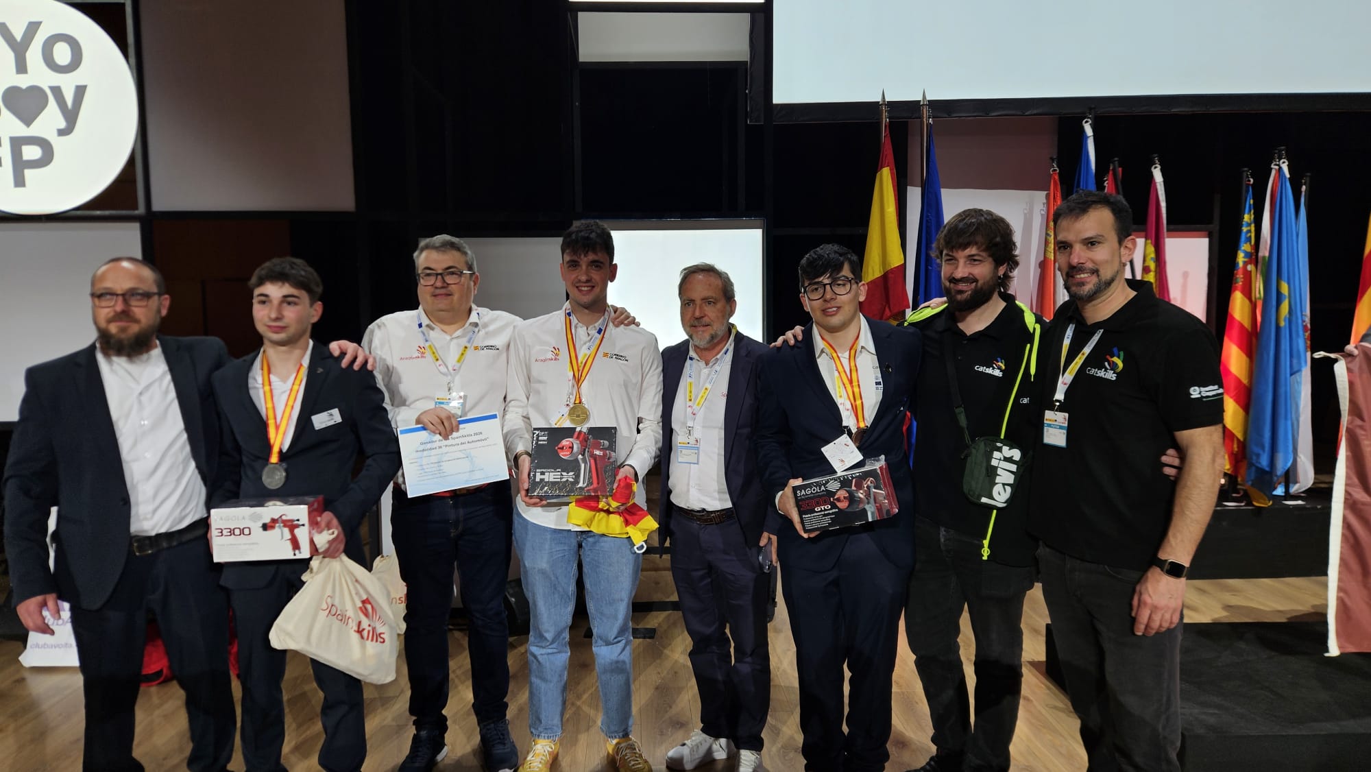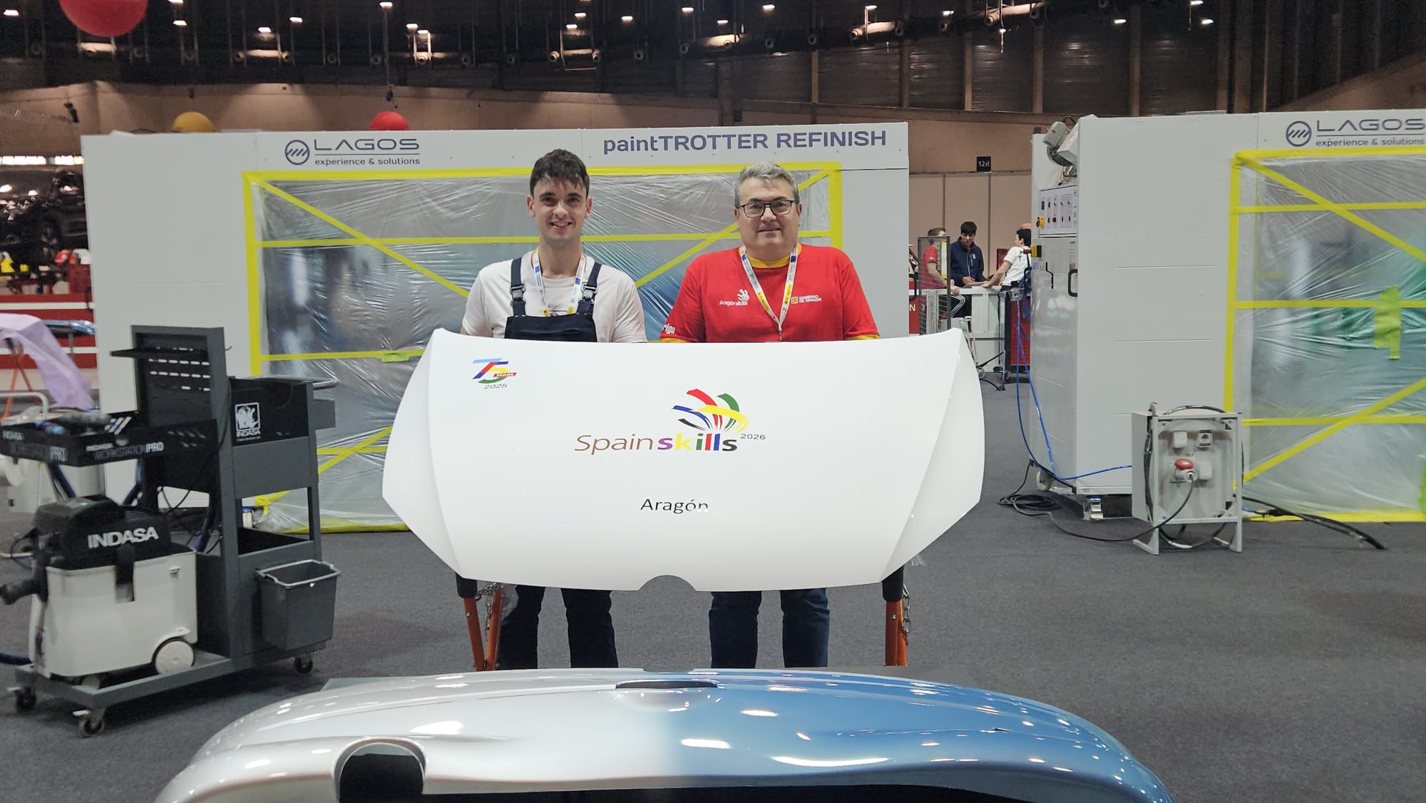 El CPIFP Bajo Aragón celebra un nuevo éxito en el ámbito de la Formación Profesional. Nuestro alumno Raúl Gimeno Sánchez, acompañado por su tutor José Miguel Pellicer Calcena, ha obtenido la medalla de oro en la especialidad de Pintura del Automóvil en la prestigiosa competición nacional Spain Skills 2026, celebrada en IFEMA (Madrid).